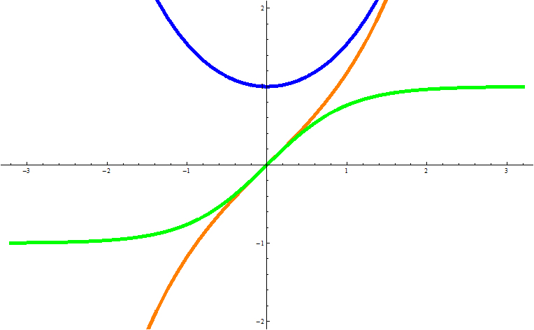 $\tanh x =$ 緑線