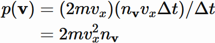 従って、$A$ に衝突する速度 $\mathbf{v}$ の分子が単位時間あたりに $A$ に与える運動量 $p (\mathbf{v})$ は、