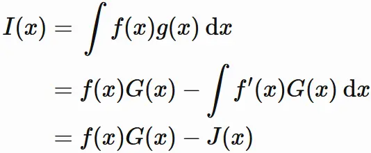 $f(x)g(x)$ の不定積分を $I(x)$ とする。