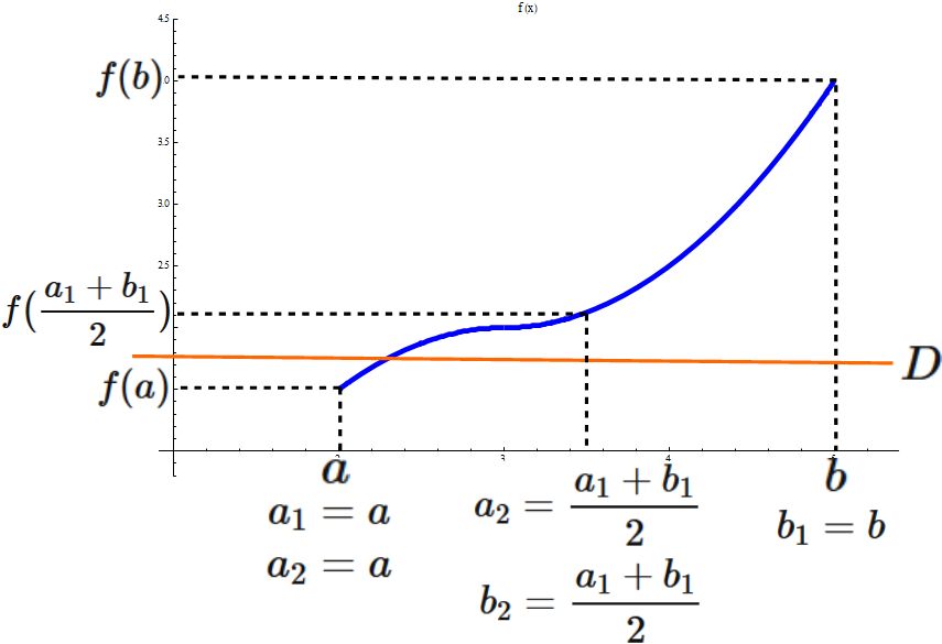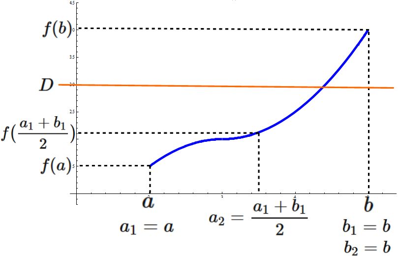 $ f(a_{n-1}) \lt D \lt f(b_{n-1}) $ のもとで