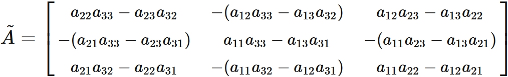 まず行列 $A$ から $i$ 行 と $j$ 列を取り除いた小行列を $M_{ij}$ とする。