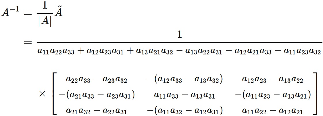 $A$ の行列式の逆数 $\frac{1}{|A|}$ と余因子行列の積に等しい。
