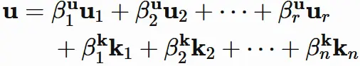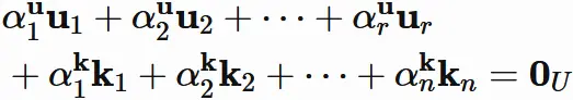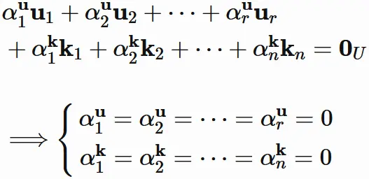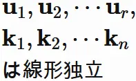 $U$ の任意のベクトルが $r+k$ の線形独立なベクトルによって表せることを意味する。