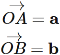 $B$ から $A$ に向かうベクトルが $\mathbf{a}-\mathbf{b}$ であることから、