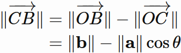 $A$ から 直線 $OB$ に下した垂線の足 (投影点) を $C$ とすると、