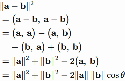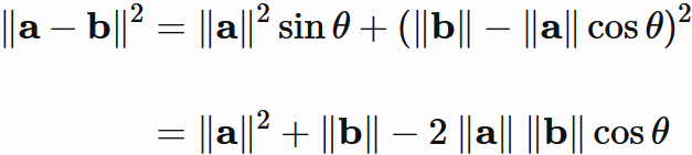 見方を変えると、この関係は左辺の $\| \mathbf{a} - \mathbf{b} \|^2$