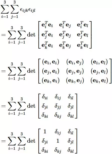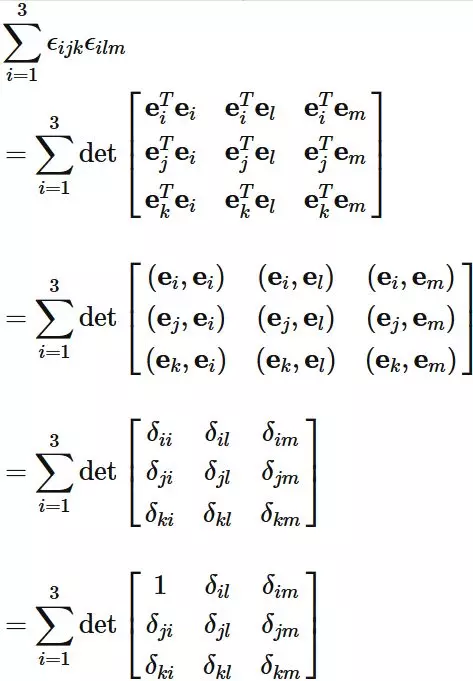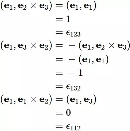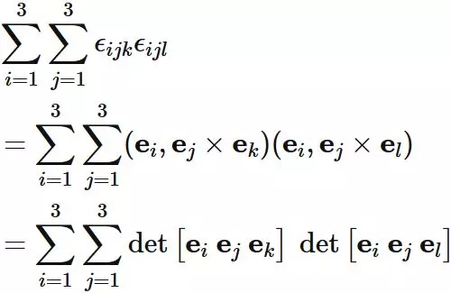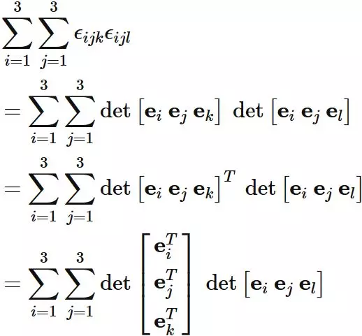 ゆえに上式の右辺に現れたスカラー三重積を行列式に書き換えると、
