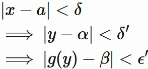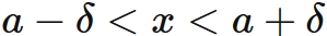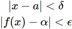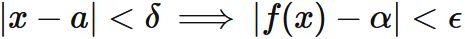 関数 $f(x)$ を $\alpha$ を中心とするどんな小さな幅の中にも収められるようにする $x=a$ を中心とする 幅 $\delta$ が存在する。