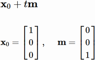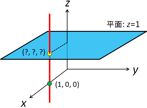 点 (1,0,0) を通り、方向ベクトルが (0,0,1) の直線上の点は、