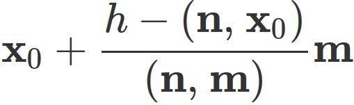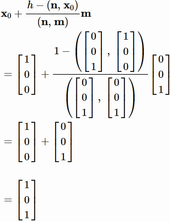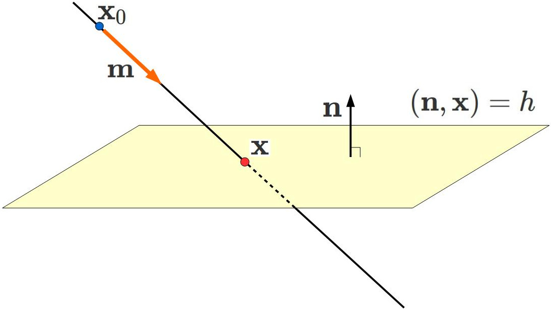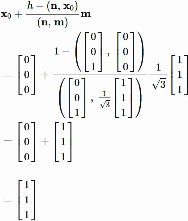 平面と直線の交点の位置を $\mathbf{x}$ とすると、