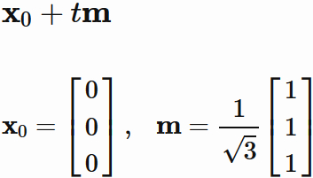 原点を通り、方向ベクトルが $\frac{1}{\sqrt{3}}(1,1,1)$ の直線と