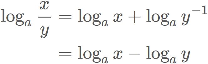 $x$ の対数関数と $y$ の対数関数の差に等しい。