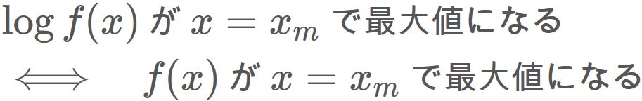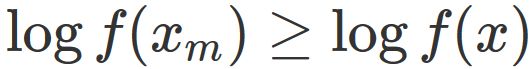 \log f(x) \hspace{1mm} が \hspace{1mm} x=x_{m} \hspace{1mm} で最大値