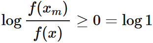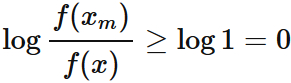 $\log f(x)$ が $x=x_{m}$ で最大になることを表している。
