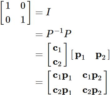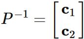 $P^{-1}$ の行ベクトルを $ \mathbf{c}_{1}, \mathbf{c}_{2}$ とすると、