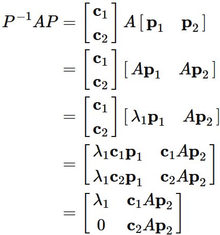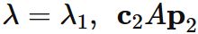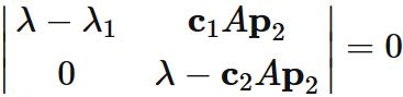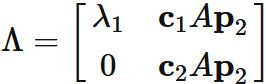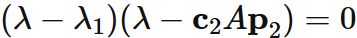 である。すなわち、$A$ の固有値は $\lambda_{1}$ と $\mathbf{c}_{2} A \mathbf{p}_{2}$ である。