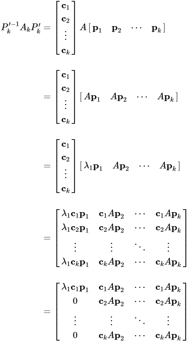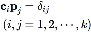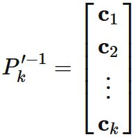 $P^{-1}$ の行ベクトルを $ \mathbf{c}_{1}, \mathbf{c}_{2}, \cdots, \mathbf{c}_{k}$ とすると、