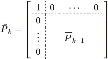 $\overline{P}_{k-1}$ を用いて $k \times k$ 行列 $\tilde{P}_{k}$ を