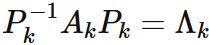 上式は $A_{k}$ が正則行列によって三角化可能であることを表す式である。