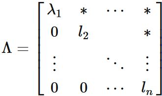 対角成分が $A$ の固有値に等しい上三角行列 $\Lambda$ が存在する。