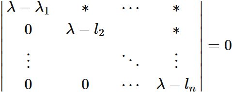 である。すなわち、$A$ を三角化した行列 $\Lambda$ の対角成分は $A$ の固有値に等しい。