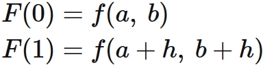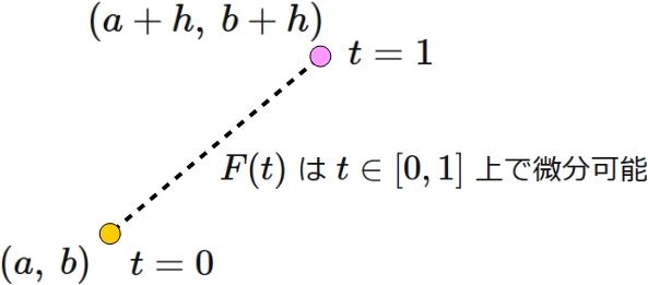 $D$ 内の二点 $(a, b)$ と $(a+h, b+k)$ に対し、