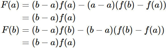 ロルの定理から $F'(\xi)=0$ を満たす $\xi$ $(a \lt \xi \lt b)$ が存在する。