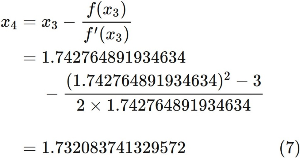 そこで以下では $\sqrt{3}$ の平方根の近似値をニュートン法で求め、
