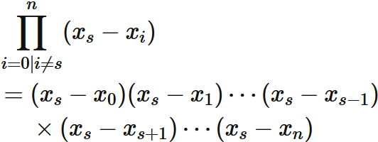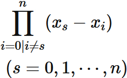$i = s$ の場合を除いた $ (x_{s}-x_{i})$ の積を表す。