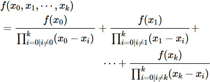 関数 $f(x)$ の $x=x_{0}, x_{1}, \cdots , x_{n}$ に対する