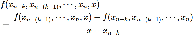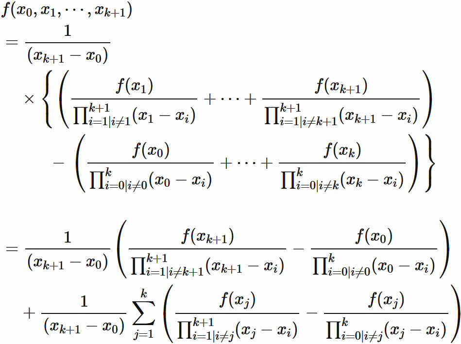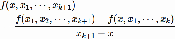 $x, x_{1}, \cdots, x_{k+1}$ に対する差分商は、