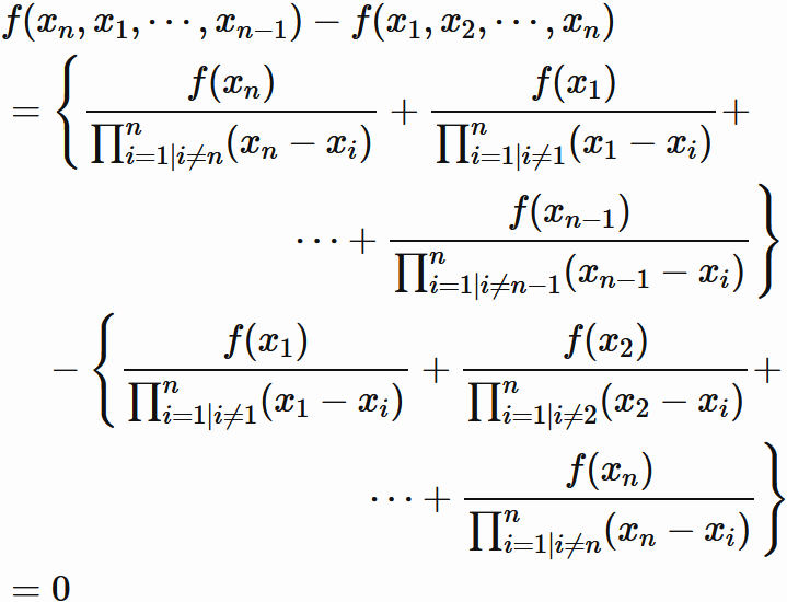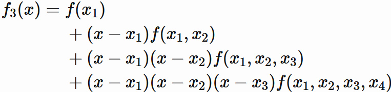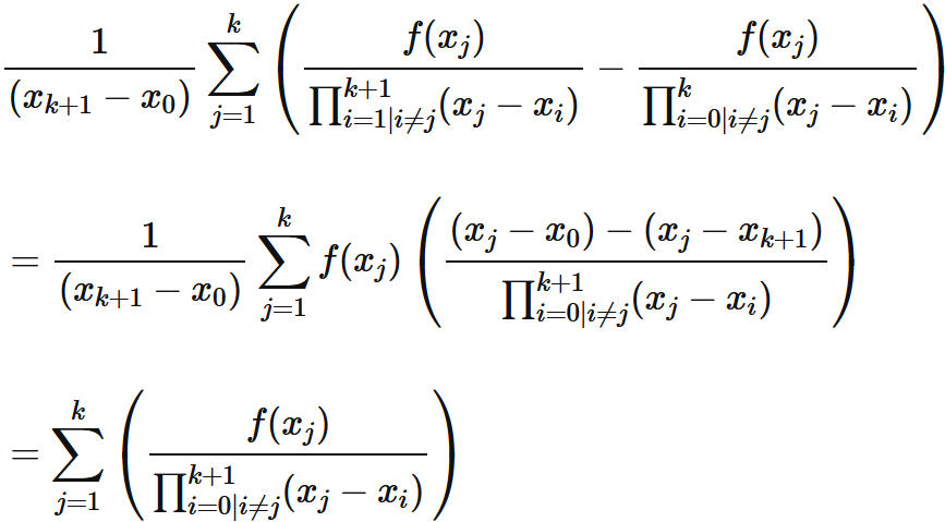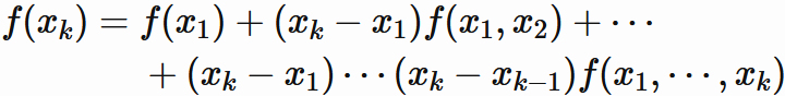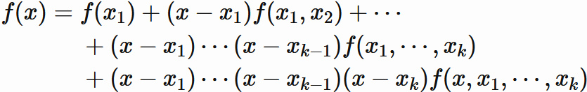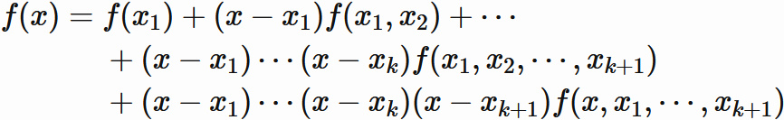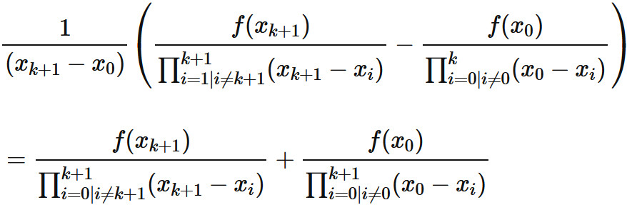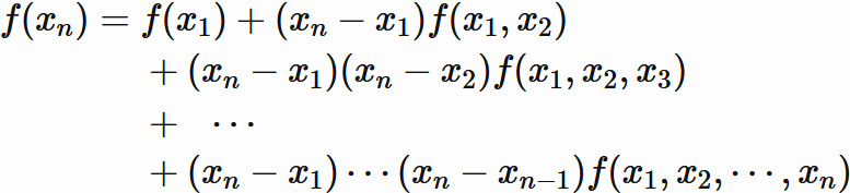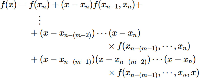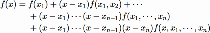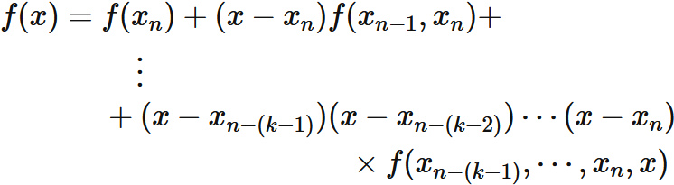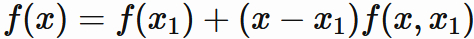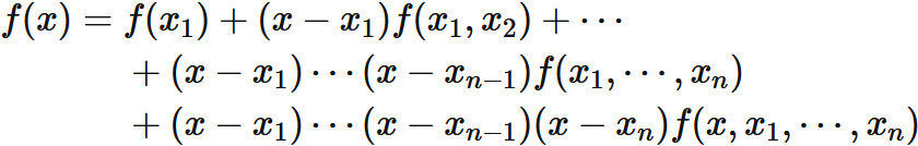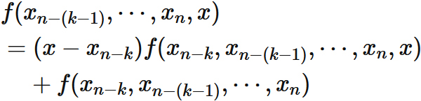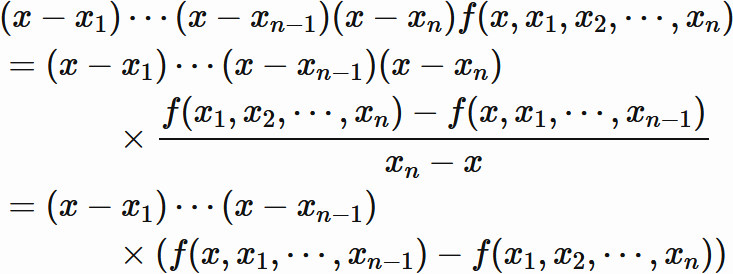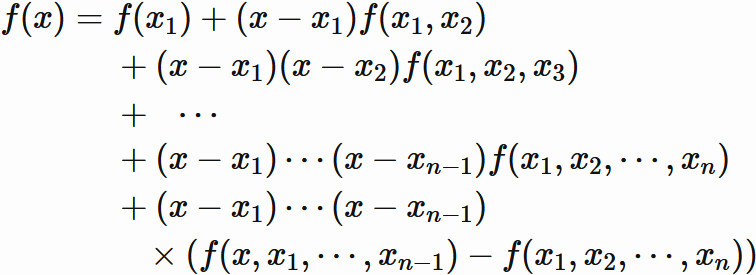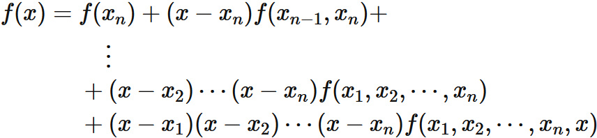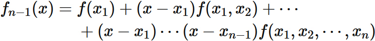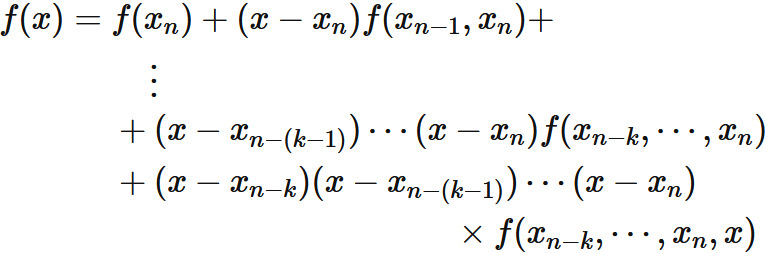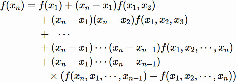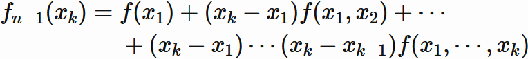 差分商補間公式 $f_{n-1}(x)$ の $x=x_{n}$ の場合に等しい。