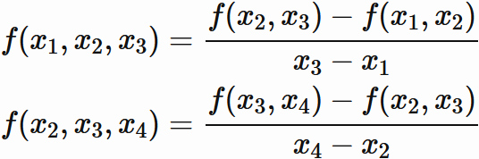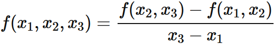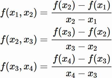 階数の小さい差分商 (divided differences) から順に定義して行く。
