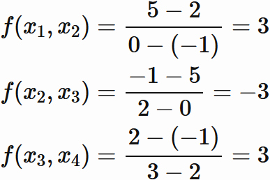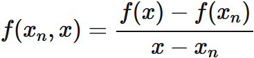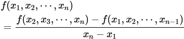 $x = x_{1}, x_{2}$ に対する $1$ 階の差分商 $f(x_{1}, x_{2})$ は、