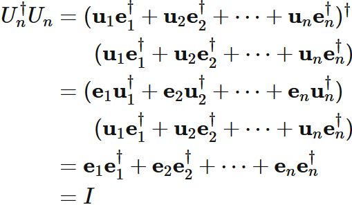 これより $UU^{\dagger}=I$ も成り立つので
