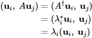 正規行列の異なる固有値の固有ベクトル同士は直交する。