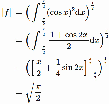 区間 $[a,b]$ で定義されている実関数 $f(x)$ のノルムが