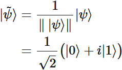 このように規格化されていないベクトルをノルムで割ると状態ベクトルになる。
