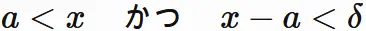 任意の正の $\epsilon$ に対して正の数 $\delta$ が存在し、