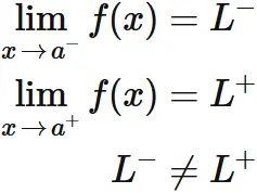 よって、$x=1$ で $f$ の左極限と右極限が収束はするが等しくないので、