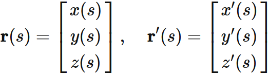 パラメータ $s$ のときの位置ベクトルとその微分を