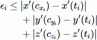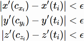 を満たす $c_{x_{i}}, c_{y_{i}}, c_{z{i}}$ が区間 $(t_{i}, t_{i-1})$ に存在する。