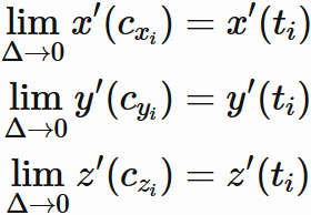 $\hspace{20mm} \bullet$ $x(t)$, $y(t)$, $z(t)$ が微分可能