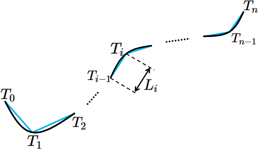 分点 $T_{i-1}$ と $T_{i}$ を結ぶ線分の長さを $L_{i}$ とすると、