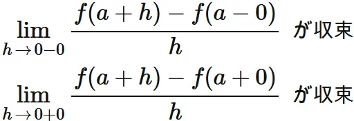 左微分係数と右微分係数が収束する (有限な値になる)、すなわち、