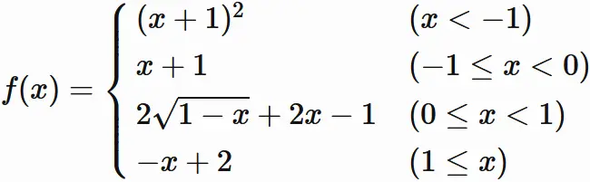 本ページでは、「区分的に定義される関数」についてを説明を行い、