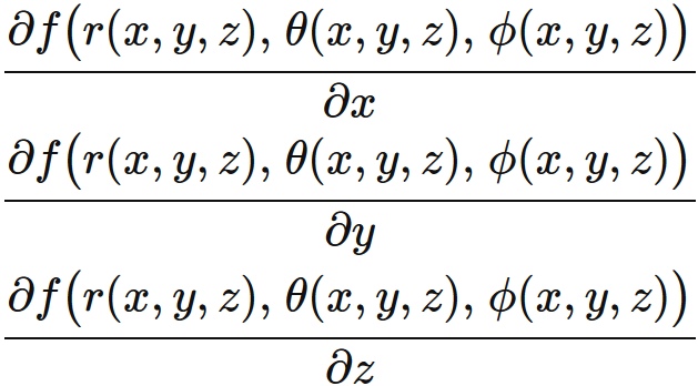 $f$ のデカルト座標による偏微分は、