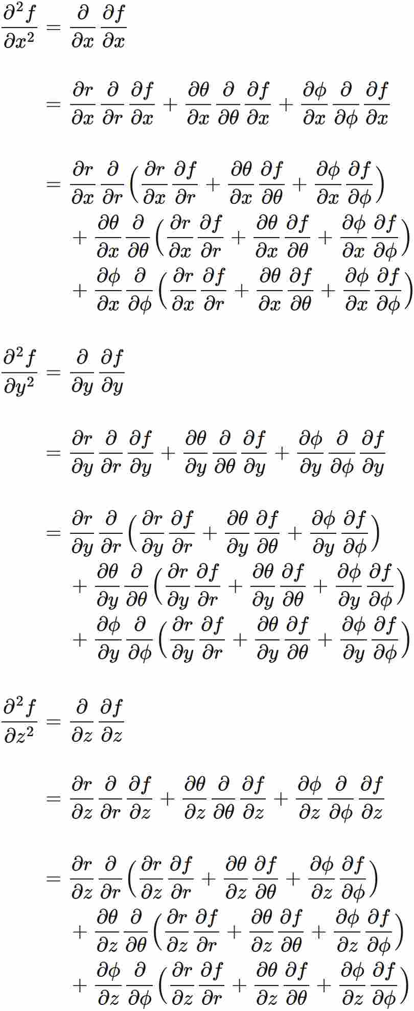 $f$ を極座標 $(r, \theta, \phi)$ の関数とする。