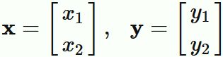 $\mathbf{x}$ と $\mathbf{y}$ には、