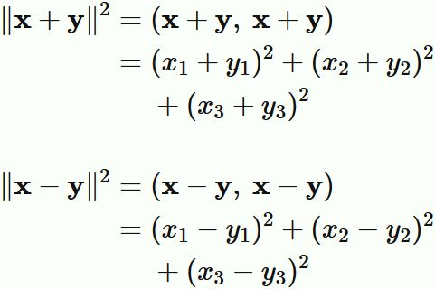 内積とノルムが定義された任意の実ベクトル空間の任意の二つのベクトル